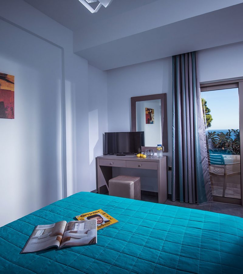 Vous serez séduit par le décor contemporain et raffiné, les couleurs vives et l’éclairage discret et tendance de notre mini-suite avec vue sur la mer. Cette suite de 20 m² peut accueillir jusqu’à 2 personnes et constitue un excellent choix pour un séjour agréable à Agia Pelagia, en Crète. Elle dispose d’un balcon offrant de belles vues sur la mer crétoise et de tous les équipements nécessaires pour garantir un séjour confortable pour ses hôtes. La salle de bain stylisée est dotée d’une agréable douche de pluie.