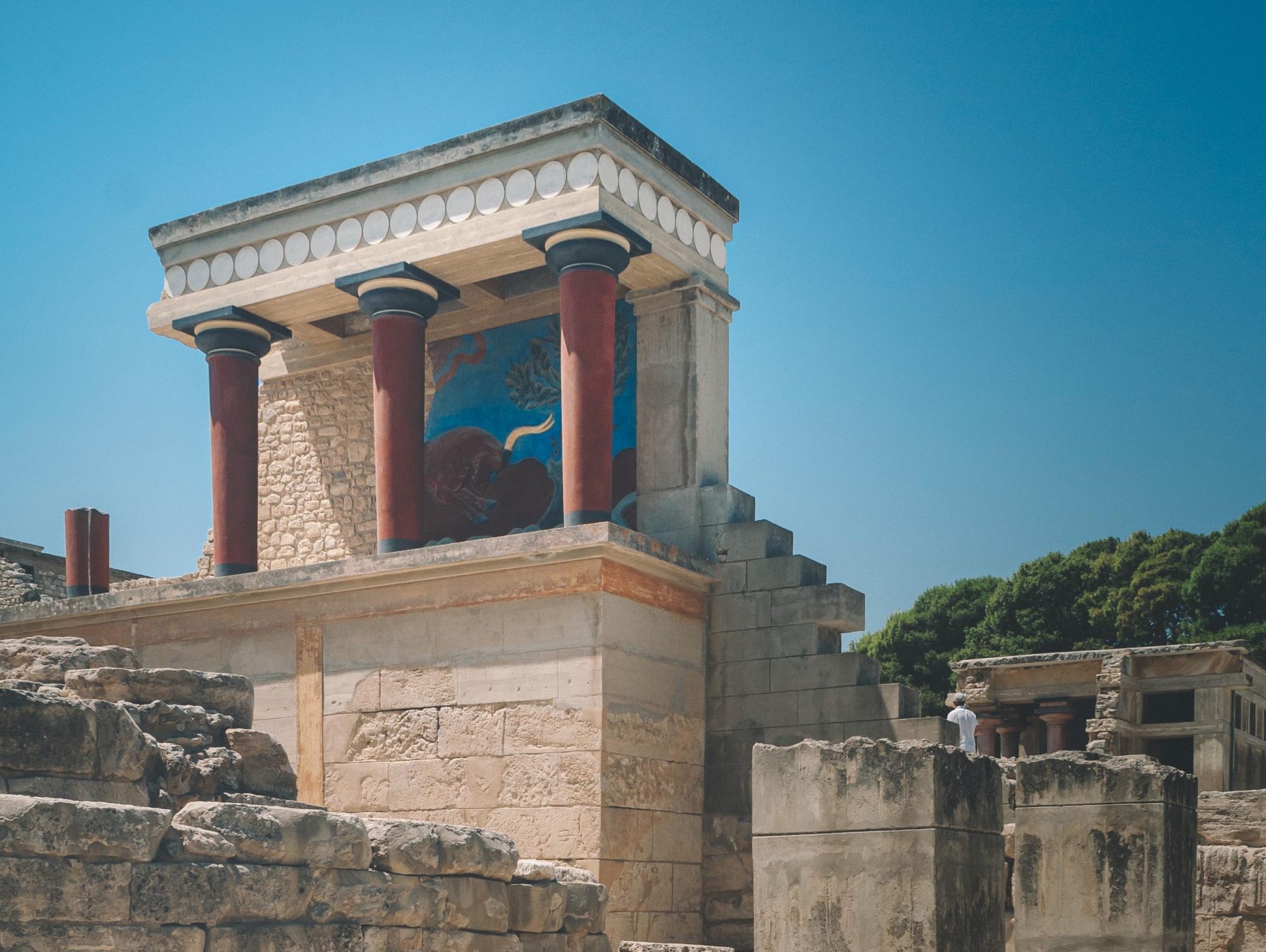 Une destination incontournable pour les visiteurs de la Crète. Le site archéologique de Knossos est situé à 5 km au sud-est de la ville d’Héraklion. Le premier palais minoen a été construit en 1 900 av. J.-C. sous la dynastie de Minos. Ses ruines sont aujourd’hui le témoignage de l’établissement néolithique. Il fut détruit en 1 700 av. J.-C. et un nouveau palais fut construit à sa place. Le palais couvrait une superficie de 22 000 m², était constitué de plusieurs étages et disposait d’un plan d’aménagement complexe. Le palais est ainsi lié à des légendes captivantes, comme le mythe du Labyrinthe et du Minotaure. Entre 1 700 et 1 450 av. J.-C., la civilisation minoenne a atteint son apogée. Knossos était l’une des villes les plus importantes. Au cours de ces années, la ville fut détruite deux fois par des tremblements de terre en 1 600 et 1 450 av. J.-C.
